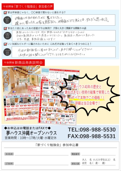 【沖縄県 中頭郡】 夢ハウス社長と語る「家づくり勉強会」